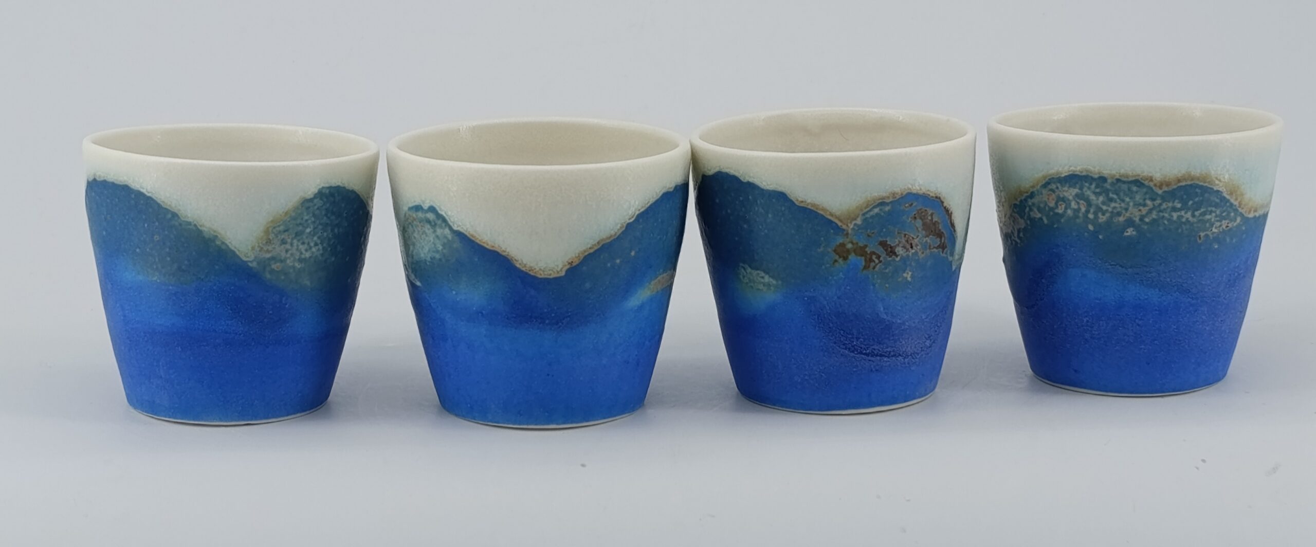 Les pièces sont en porcelaine, je crée les émaux, que je superpose, 2 émaux sur chaque pièce. Les paysages dépendent des émotions qui me traversent pendant l’émaillage ce jour là, et de chaque émail utilisé.