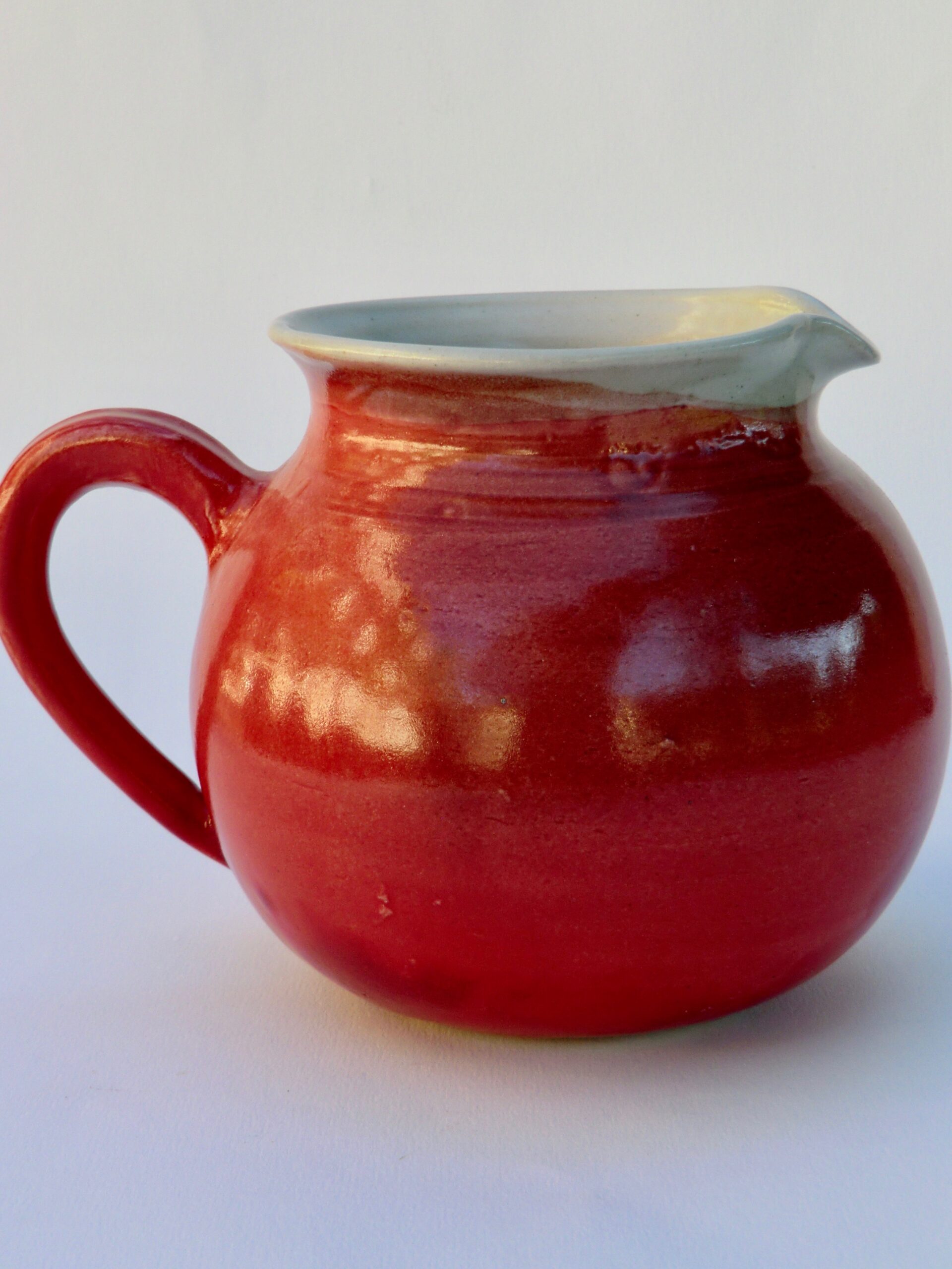 Pichets tournés à la main en petite série par mes soins, puis émaillés et cuits au four à gaz à 1300° en réduction.  Mes émaux sont recherchés et fabriqués maison. Les couleurs présentent des variations dues à la flamme de la cuisson gaz (me contacter pour précisions supplémentaires) et présentent de légères déformations. Elles sont disponibles dans 6 couleurs : bleu clair, bleu foncé, orange, rouge, vert herbe et vert émeraude.
