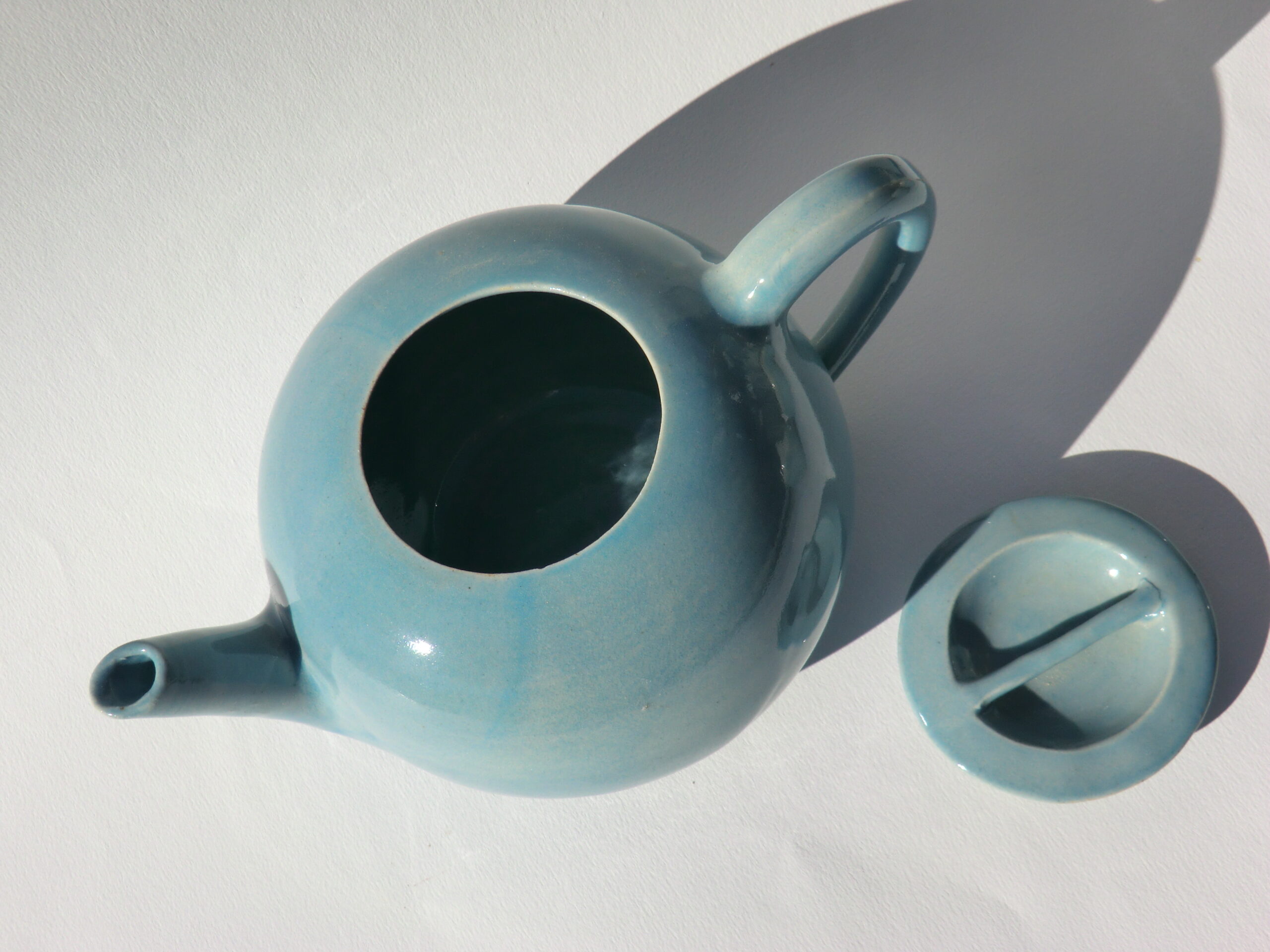 Théières tournées à la main en petite série par mes soins, puis émaillées et cuites au four à gaz à 1300° en réduction. Mes émaux sont recherchés et fabriqués maison. Les couleurs présentent des variations dues à la flamme de la cuisson gaz (me contacter pour précisions supplémentaires) et présentent de légères déformations. Elles sont disponibles dans 5 couleurs : bleu clair, bleu foncé, orange, rouge et vert émeraude.