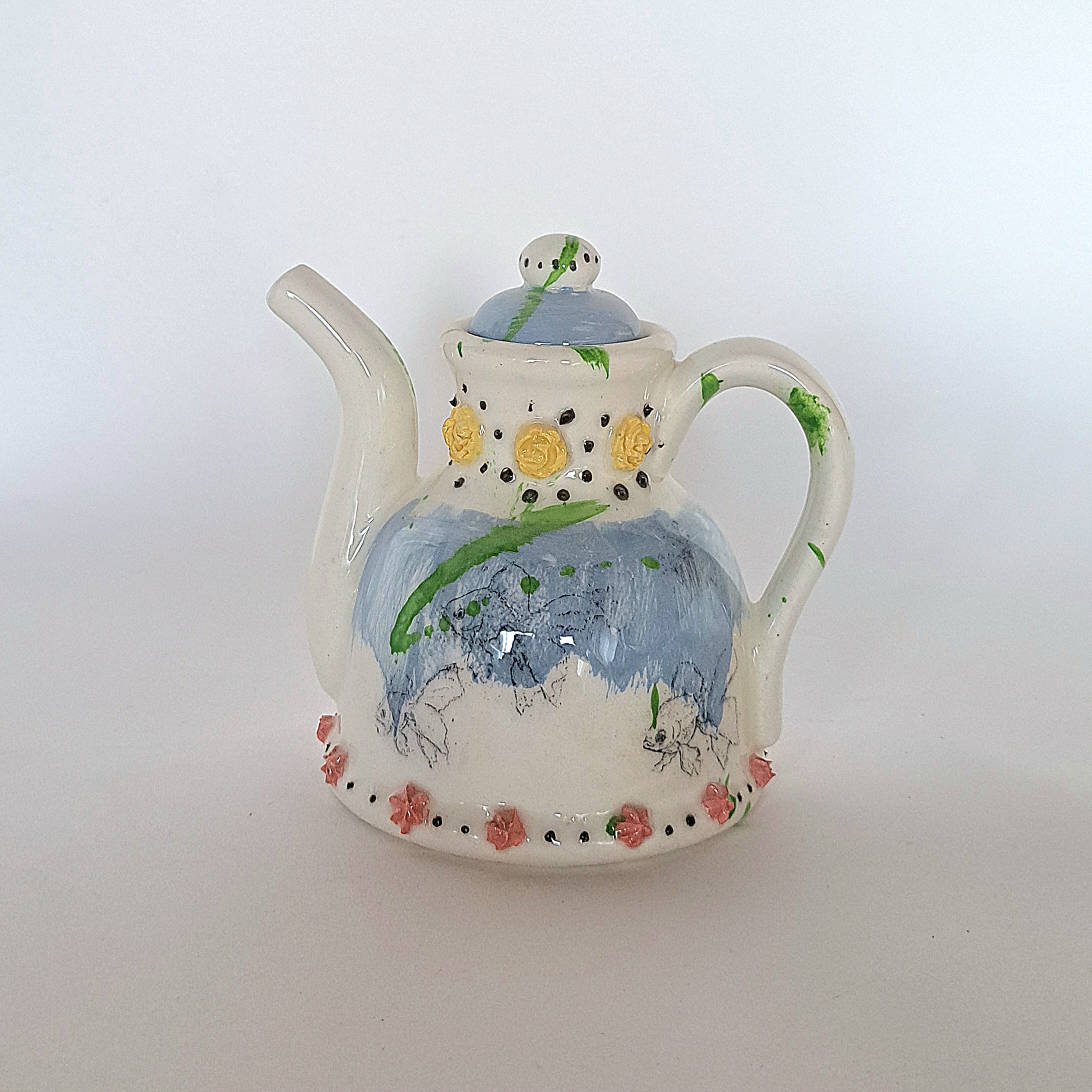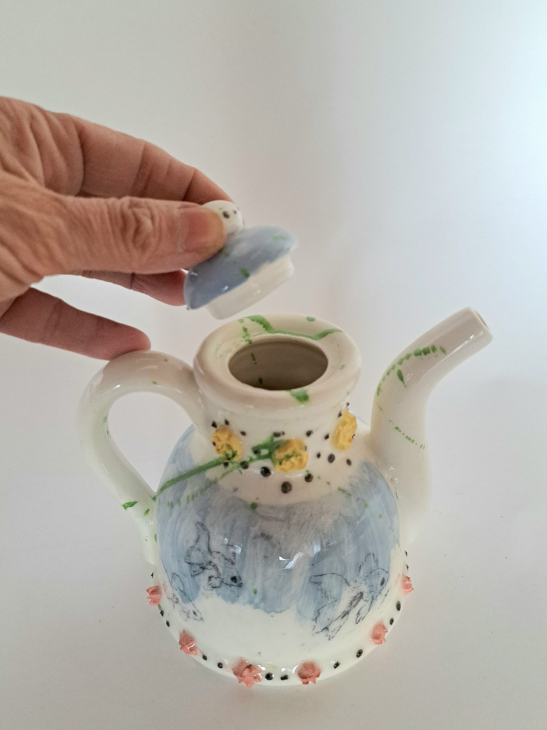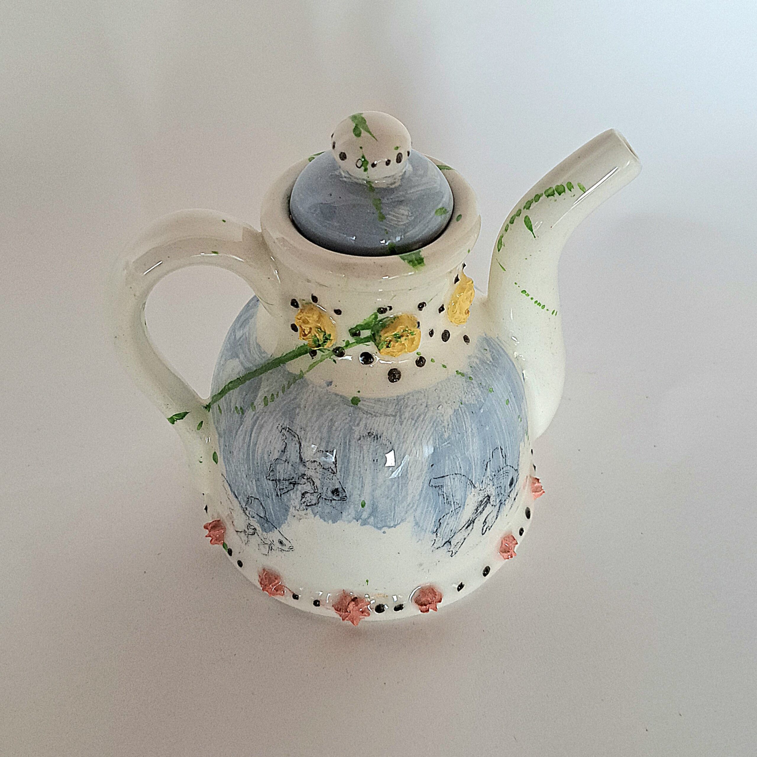 Décorée d’engobes et de transfert pour créer un univers à la fois ludique et poétique
