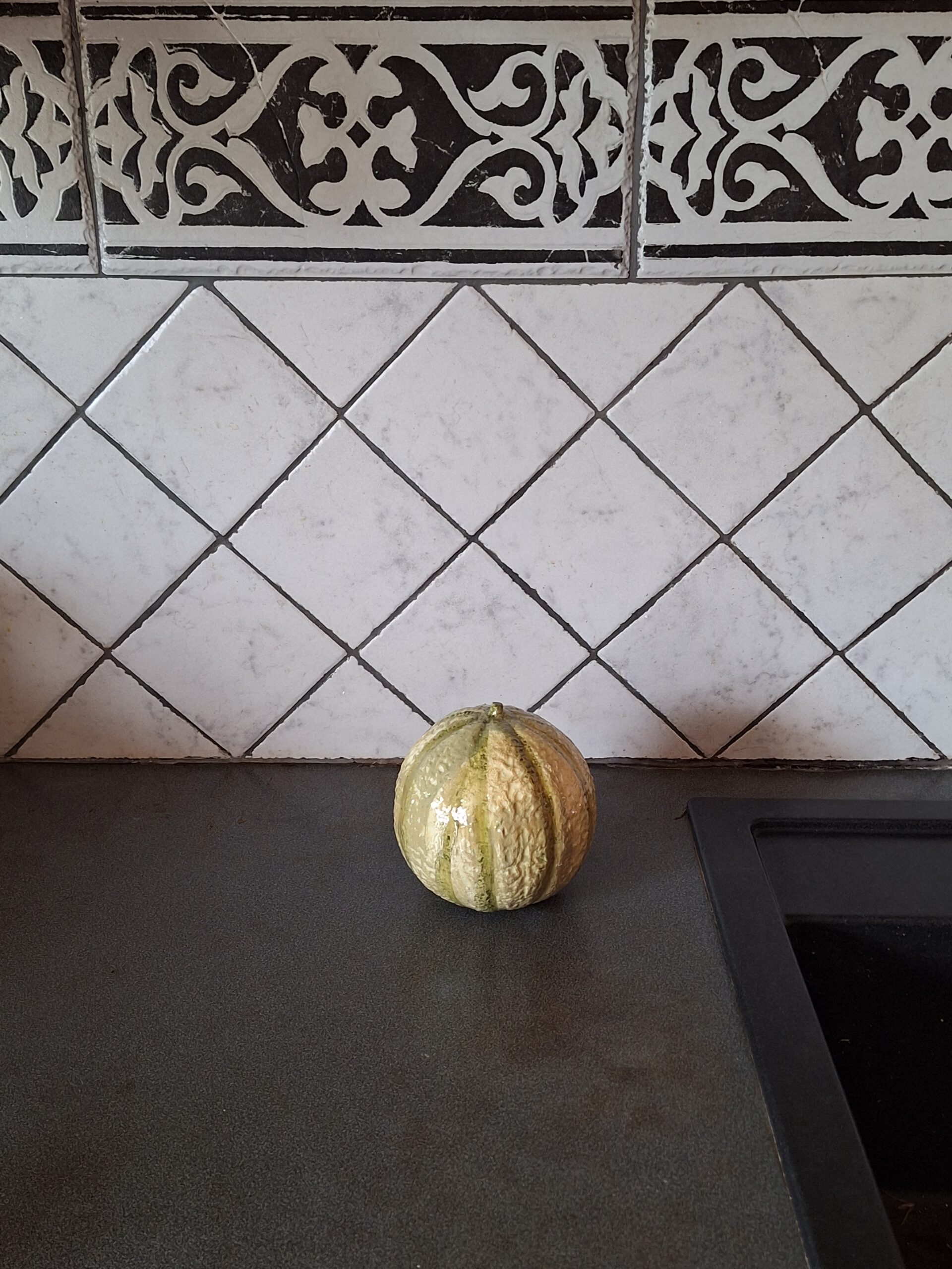 Melon entier en barbotine de faïence en taille réelle du végétal.
