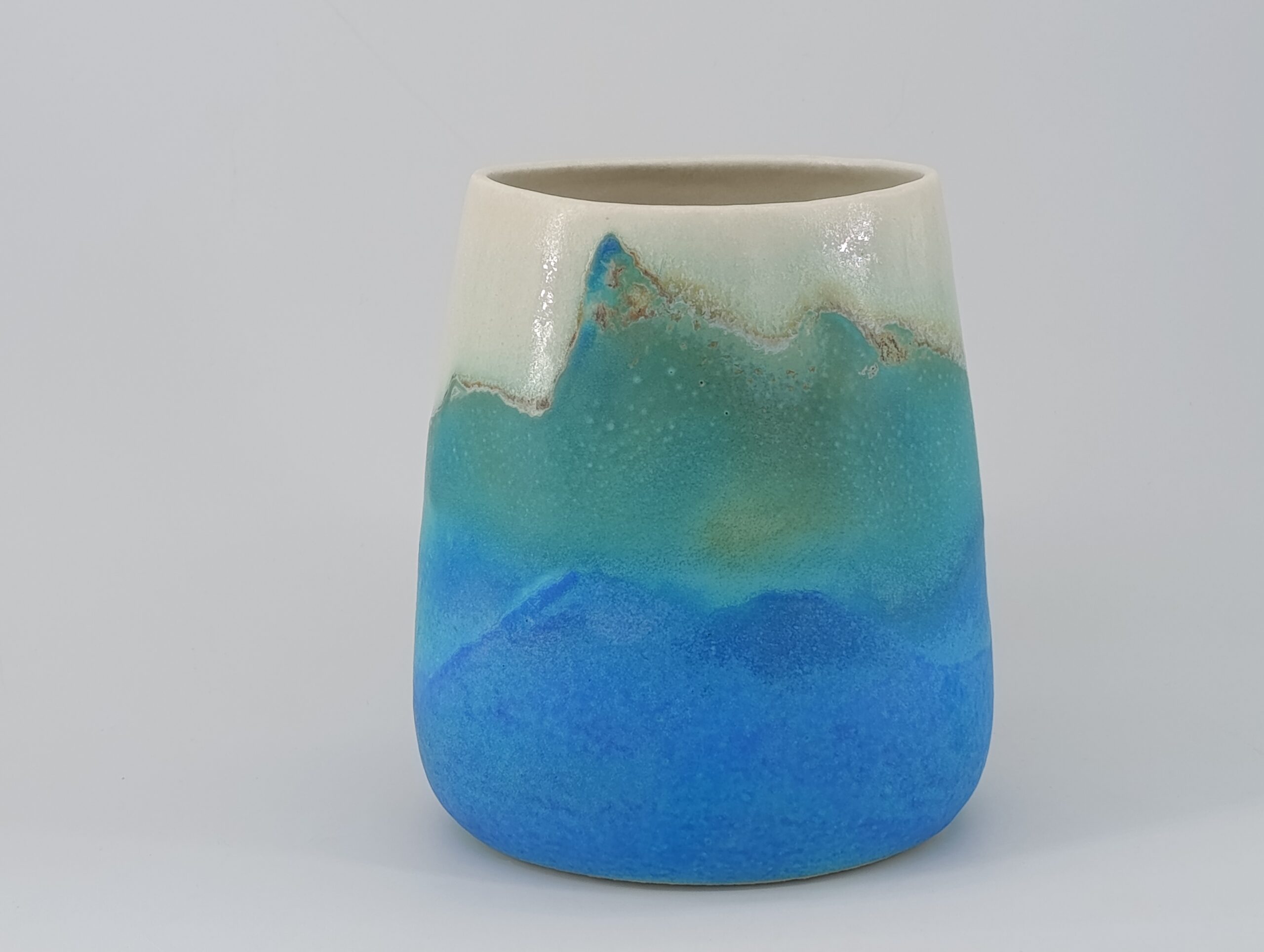 Les pièces sont en porcelaine, je crée les émaux, que je superpose. Les paysages dépendent des émotions qui me traversent pendant l’émaillage ce jour là.