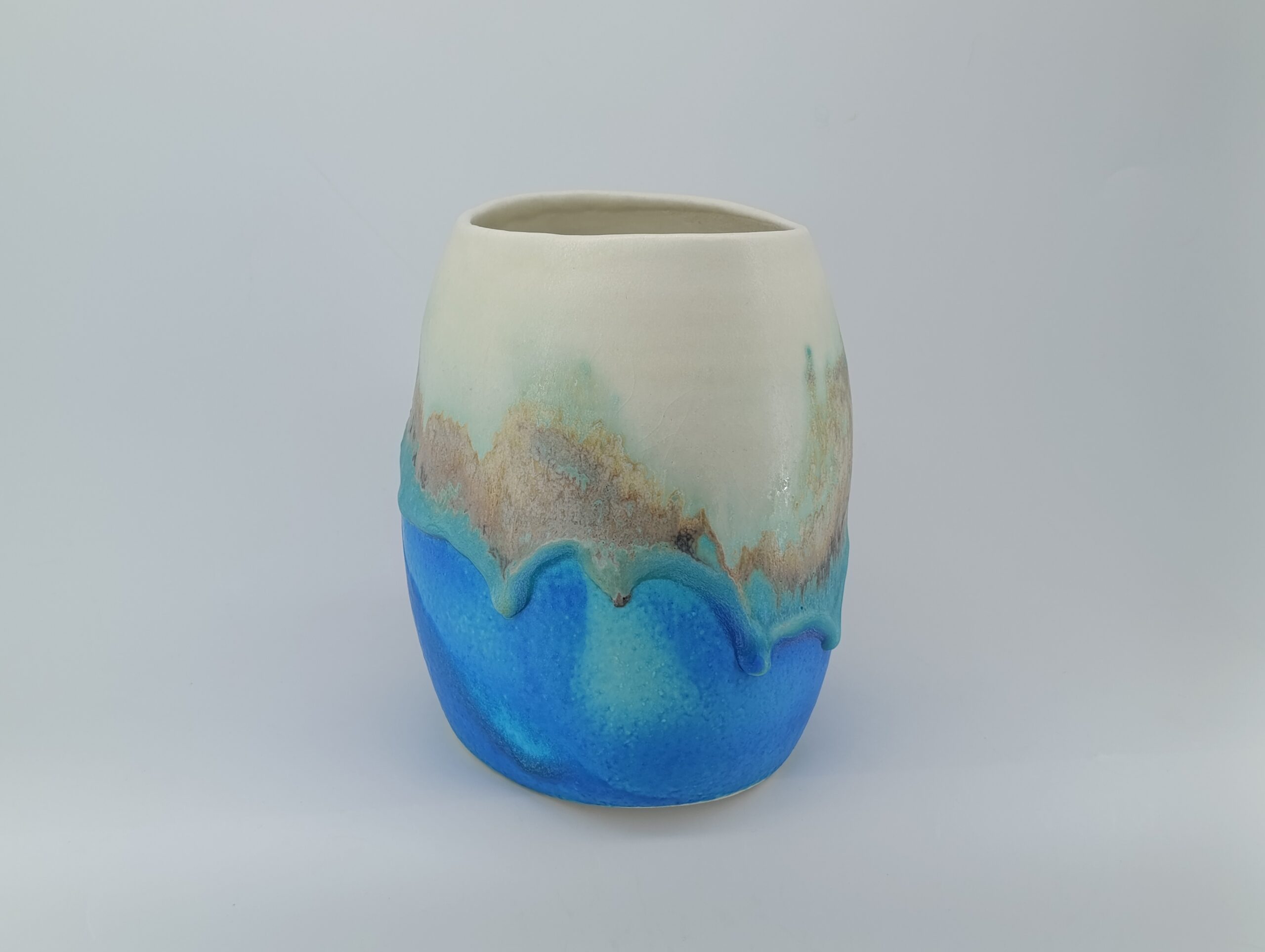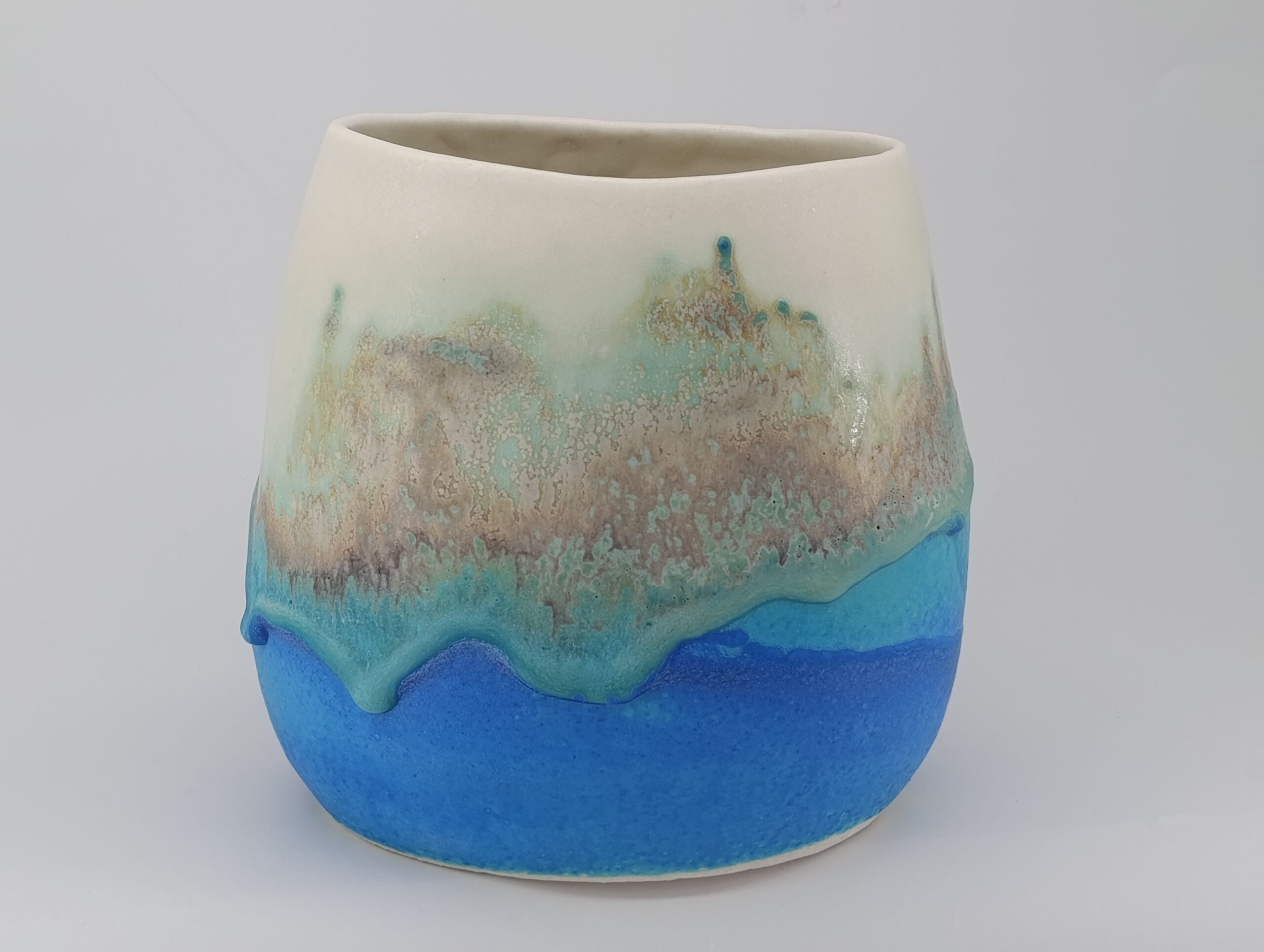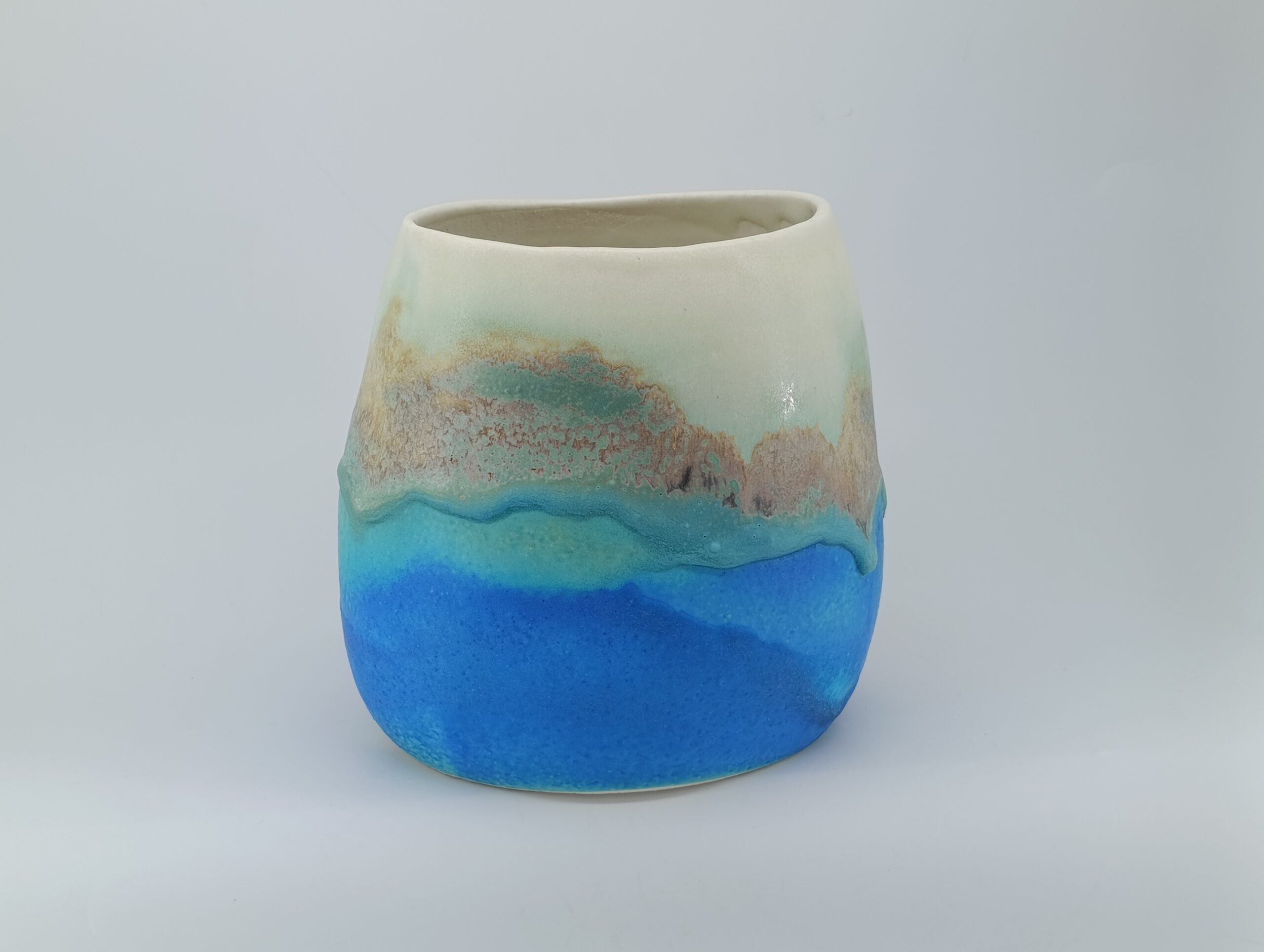 Les pièces sont en porcelaine, je crée les émaux, que je superpose. Les paysages dépendent des émotions qui me traversent pendant l’émaillage ce jour là.