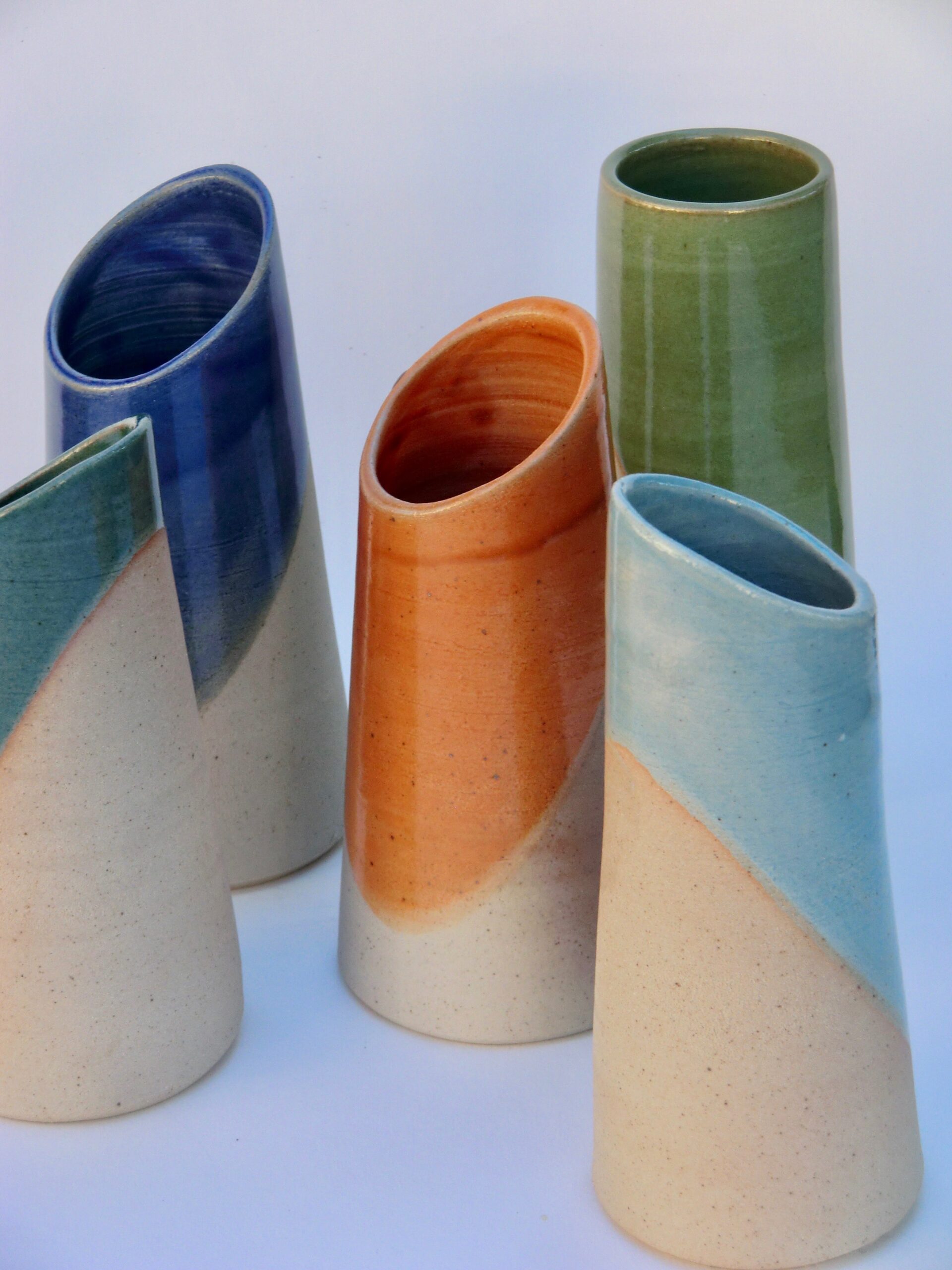 Vaisselle de grès émaillée cuite à 1300° au gaz en réduction et pièces décoratives de grès enfumées en basse et haute température. Atelier uniquement sur rdv.