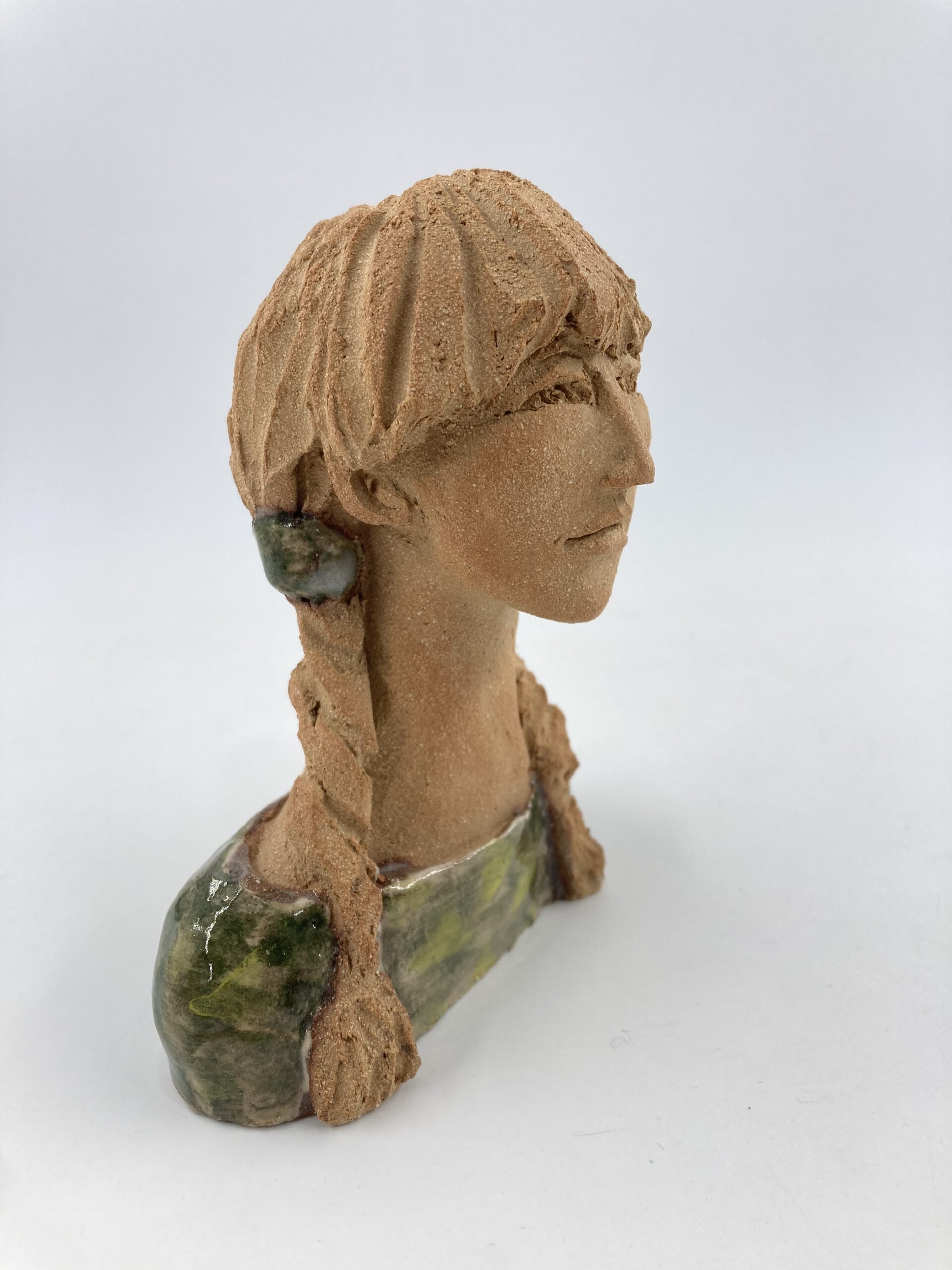 Nouveauté 2025 : buste de femme avec des tresses – Décor vert et jaune