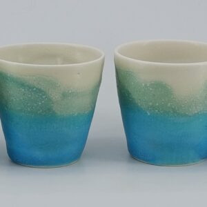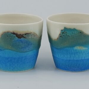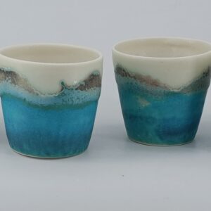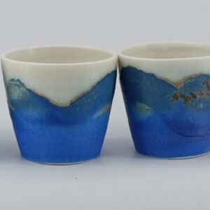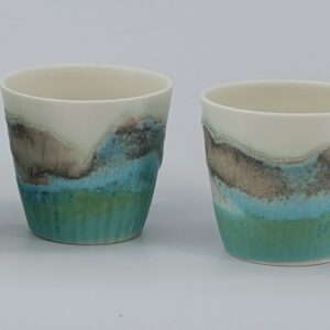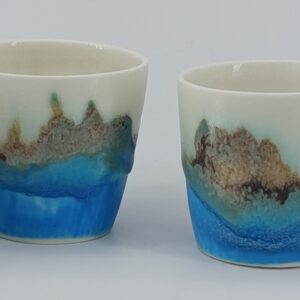 Les pièces sont en porcelaine, je crée les émaux, que je superpose, 2 émaux sur chaque pièce. Les paysages dépendent des émotions qui me traversent pendant l’émaillage ce jour là, et de chaque émail utilisé.